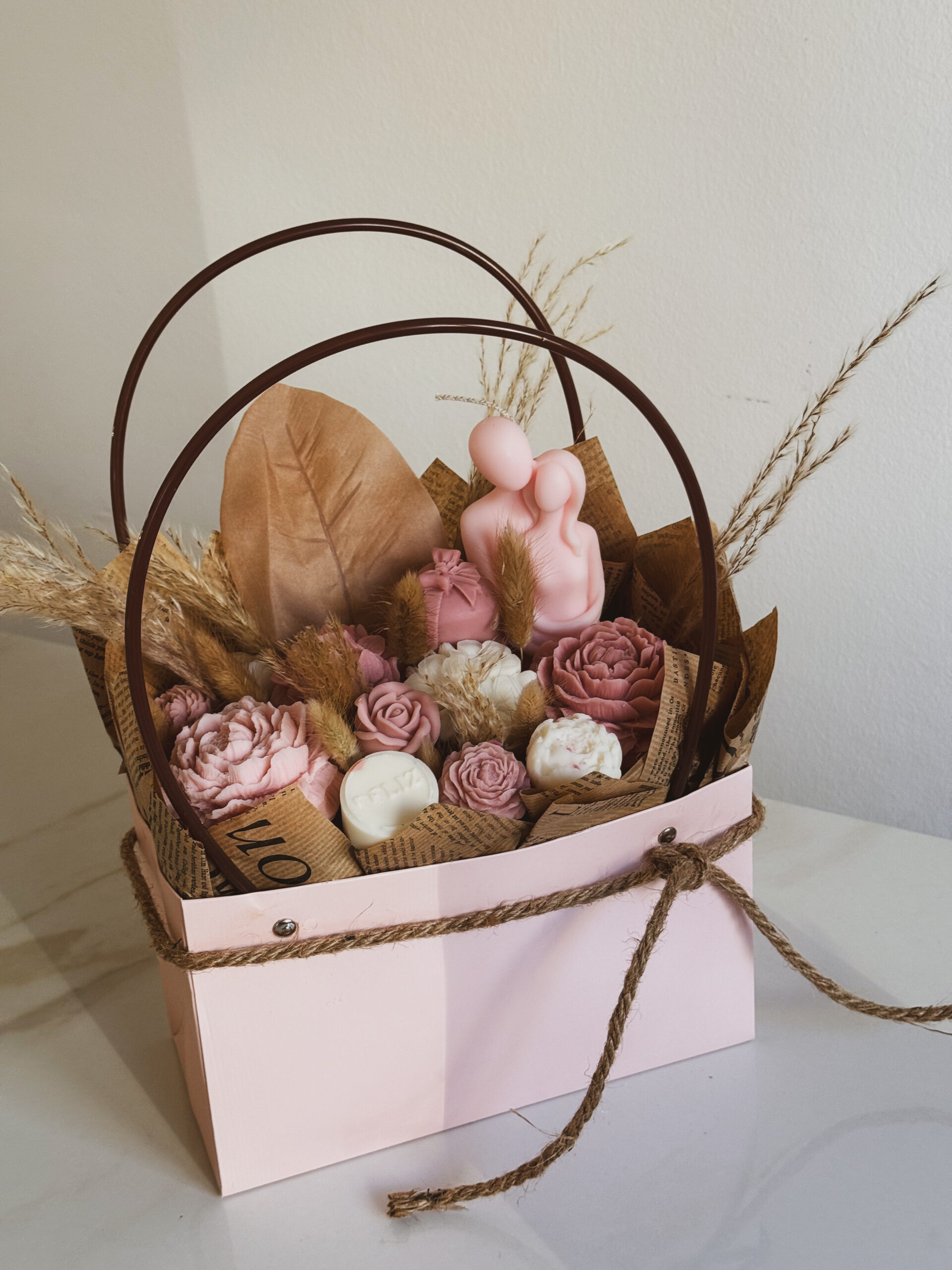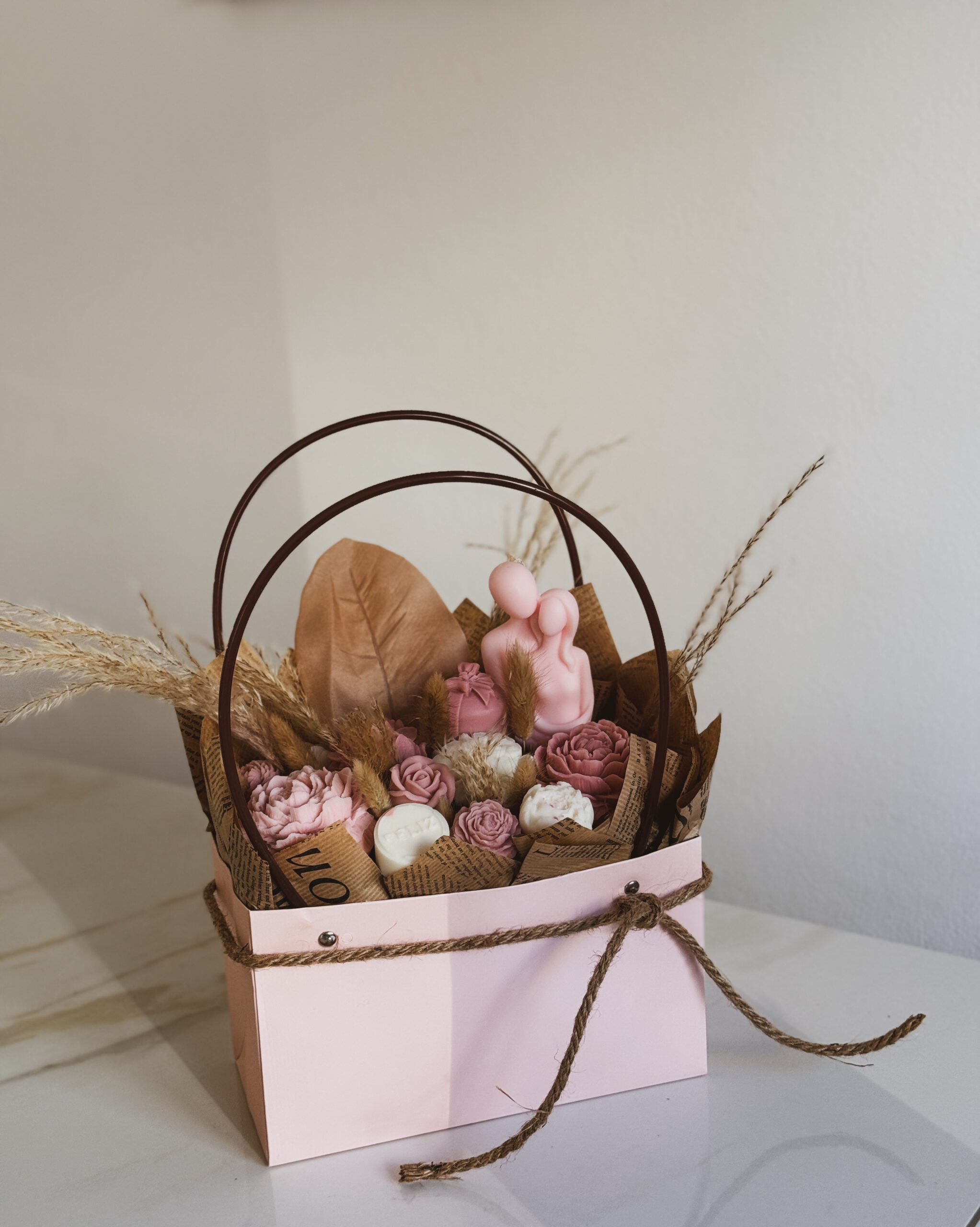 Μία υπέροχη σύνθεση απο φυτικό κερί σόγιας  για την ημέρα των ερωτευμένων. Μπορείς να διαλέξεις το χρώμα του κεριού αλλά και το άρωμα! Η τσάντα βγαίνει σε ροζ και σε…